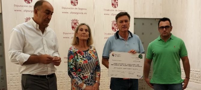 La Asociación recibía en el Salón del Trono de la Diputación la recaudación del torneo benéfico de pádel 'Peloteando por el Alzheimer', un campeonato organizado desde la institución provincial y Padelzone, cuyo director deportivo, Iván García, también escuchaba en primera persona las palabras de agradecimiento de la presidenta de AFA Segovia, quien recibía con una sonrisa el cheque por importe de 500 euros de manos de Francisco Vázquez y Miguel Ángel de Vicente, presidente y vicepresidente de la Diputación Provincial.