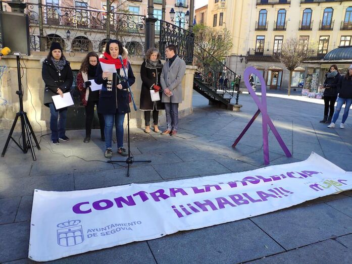 La Plaza Mayor de Segovia ha sido el lugar elegido por el Consejo sectorial de la mujer del Ayuntamiento para convocar la primera concentración de 2019 contra la violencia de género, una forma de visibilizar el No a cualquier tipo de violencia que se ejerce contra la mujer.