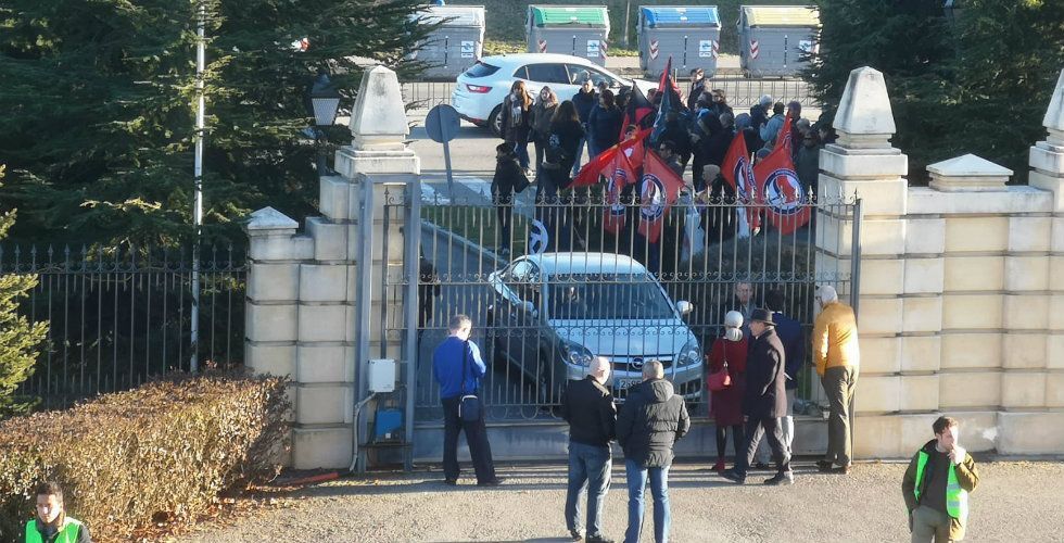 Tras una pancarta que decía “Al fascismo no se le discute, se le combate’ y al grito de “vosotros fascistas sois los terroristas’, un centenar de antifascistas se manifestaron ante el Hotel Cándido, donde se celebró el acto. Por la mañana, el Hotel amaneció con pintadas en las que se podía leer ‘No seáis cómplices del fascismo’ que fueron borradas. Previamente, “con respecto a la polémica suscitada por la utilización de una sala por parte de un determinado grupo político”, Cándido hizo público un comunicado en el que manifestaba que el Hotel “se desvinculaba del ideario político de su clientela, respetando así la libertad de expresión que ampara nuestro marco constitucional”.