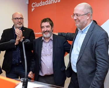 El número dos del partido compareció junto a ella ante los medios de comunicación en presencia, además, de cuatro de los cinco procuradores de Ciudadanos en las Cortes -la excepción fue el leonés Manuel Mitadiel, que el domingo arropó la candidatura de Igea-, del delegado territorial (máximo cargo orgánico en Castilla y León), Miguel Ángel González, y de la coordinadora territorial, la concejala del ayuntamiento de Valladolid y diputada provincial, Pilar Vicente.