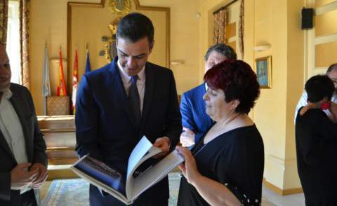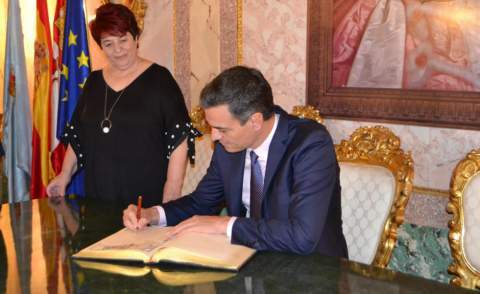 Tras la inauguración del Foro, Pedro Sánchez enfiló hacia el Ayuntamiento de Segovia, seguido por su cohorte de fotógrafos mudos. En la restringida Sala Blanca de la Casa de todos los segovianos, donde fue recibido por parte de la Corporación municipal, firmó en el libro de honor, en el que dejó escrito: