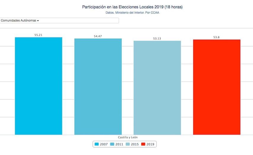 En concreto, en las Municipales, la participación de Segovia en el segundo avance del día, a las 18:00 horas, ha sido del 57,64%, 0,57 puntos más que en los comicios de 2015 a la misma hora. A nivel nacional, la participación en el segundo avance, a las 18:00 horas, ha sido del 50,04%, tan solo 0,25 puntos más que en 2015. En las Elecciones Generales del pasado 28 de abril, la participación a las 18:00 horas fue del 60,76%, con lo que la participación en estos comicios locales ha bajado casi 11 puntos respecto a hace un mes.