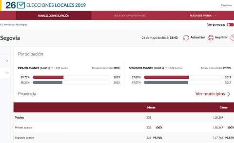 Local#26M Segundo avance: Segovia sigue superando a las medias nacional y regional, con una participación en el entorno del 57%