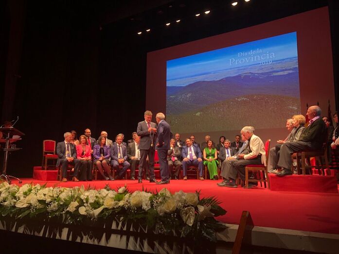 El Presidente de la Diputación, Francisco Vázquez, ha clausurado en la noche de este jueves el acto del Día de la Provincia que se ha celebrado en el Teatro Juan Bravo, donde en un escenario con la presencia de la Corporación Provincial en Pleno se han entregado las más altas distinciones de la Provincia al Centro Segoviano en Madrid y a la Real Academia de Historia y Arte de San Quirce, la Medalla de Oro de la Provincia; al cantante Ismael el título de Hijo Predilecto; a Pilar Cernuda y a Álvaro Gil Robles los de Hijos Adoptivos y a los alcaldes de Cobos de Fuentidueña, Mariano Iglesias, de Valleruela de Sepúlveda, Domingo Huerta y de Collado Hermoso, Miguel Ángel de Vicente la distinción por sus 25 años en el cargo.