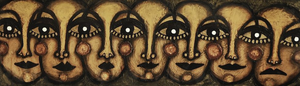 Las máscaras de Ana Carvallo son de todo tipo: Iracundas, sonrientes, esperanzadoras, hieráticas, duras… “Reflejan cómo me siento o cómo me quiero sentir. Las hay más amables y más ásperas. Al final, es de lo que estamos hechos todos, de emociones. En los cuadros acumulativos, son las múltiples personalidades que tenemos por dentro. La que mira de frente es la que se atreve a ser ella misma y quitarse la máscara aunque duela, porque duele. Quitarse la careta es la tarea de toda una vida. El objetivo es arrancarte la máscara para descubrir quién eres en realidad, que el inconsciente se manifieste y descubrirlo después. La máscara es intentar encontrarme a mí misma, independientemente del género. Atrévete a ser tú misma, pero primero averigua quién eres, es un largo y nutritivo viaje".