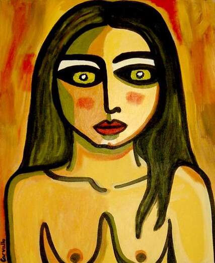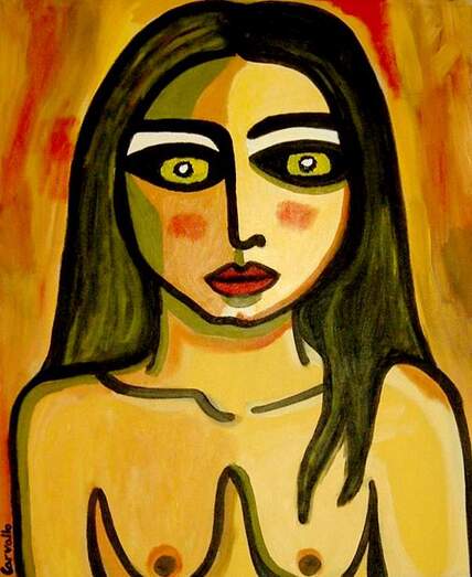 ¿Por qué la mujer y la máscara? "Es un elemento psicológico e inconsciente. La máscara nos sirve para protegernos y dar miedo a la vez, ocultar tu realidad, tu verdadero yo. Además, la máscara es símbolo de tribu, magia, ritual. Entiendo la máscara como un símbolo primitivo transformador y evocador: Los antiguos pintaban en paredes lo que querían que sucediera. Pintaban para propiciar la caza, la fertilidad, las lluvias, la abundancia... tenían un punto ritual, mágico. Para mí la máscara representa un elemento ritual que sirve para apropiarte de las características del guerrero, la bruja, el cazador... para protegerte o asustar, para ocultarte o exagerar tus virtudes. La máscara tiene ese punto mágico de comunicación con el inconsciente y una vez que integras tus máscaras, lo suyo es trascenderlas".