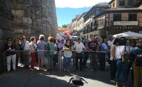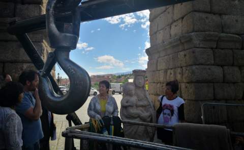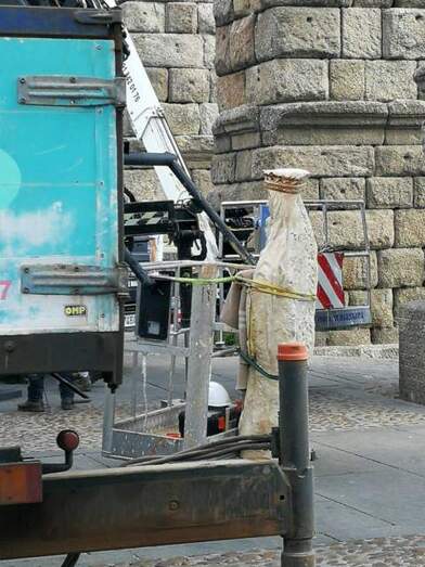 La Virgen vuelve al Acueducto de Segovia, en medio de gran expectación: “Se la puede tocar, es una réplica”