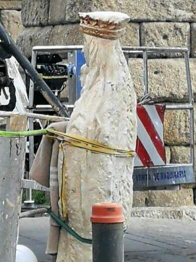 [Img #51759]A partir de la virtualización se ha obtenido un modelo a escala natural mediante la impresión en 3D. Con este modelo, fiel reflejo de la escultura, se ha sacado el molde de silicona. Obtenido el molde se procedía al vaciado de la escultura. El material utilizado para la ejecución de la réplica es una mezcla de resinas, polvo de mármol blanco, sílice y pigmentos blancos y ocres. Por último, una vez desmoldada la escultura se ha realizado una labor de patinado y policromado similar a la que presenta la imagen original. El peso de la réplica es de unos 50 kg. La empresa Restaurograma Hispania S. L, bajo la dirección del restaurador Graziano Panziari, ha sido la encargada de todos estos trabajos.