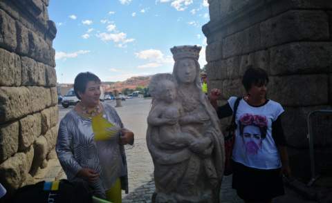 LocalLa Virgen vuelve al Acueducto de Segovia, en medio de gran expectación: “Se la puede tocar, es una réplica”