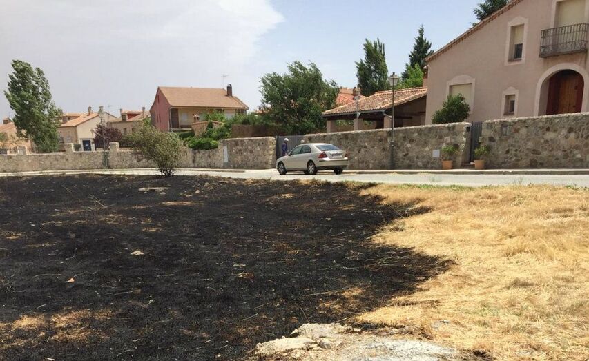 [Img #51904]El aviso del incendio de Torrecaballeros entró como fuego en zona urbana. Provocado al parecer por los trabajos de desbrozado, se declaró el fuego en un solar de la urbanización El Balagar de Torrecaballeros. No ha habido que lamentar daños personales, pero sí materiales. La dotación de los bomberos regresó de la zona sobre el mediodía.