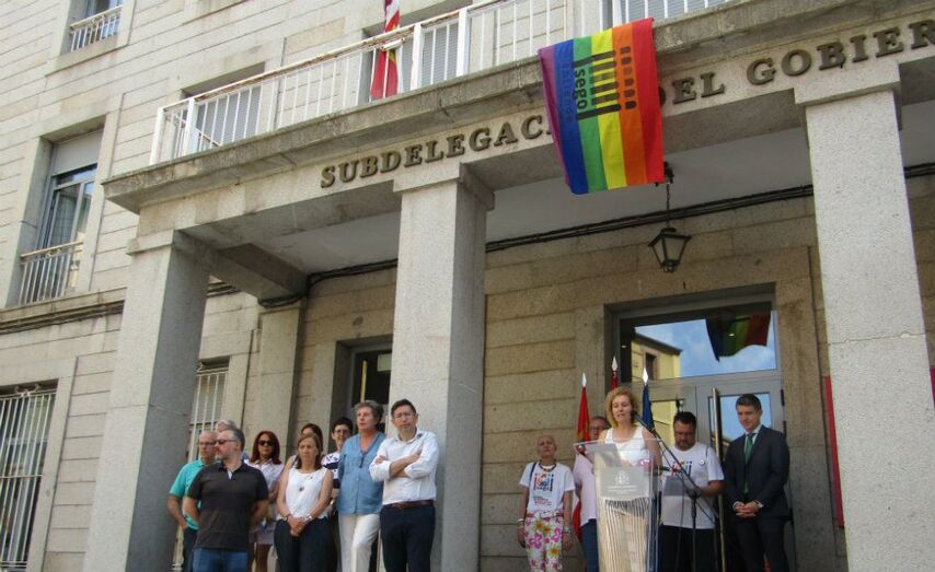 La subdelegada del Gobierno, Lirio Martín, y el presidente de Segoentiende, Marcos Tarilonte, han leído este lunes la declaración institucional aprobada por el Consejo de Ministros el pasado 28 de junio por el Día Nacional del Orgullo LGTBI. Al acto, que se ha celebrado a las puertas de la Subdelegación, han acudido también el concejal de Servicios Sociales, Andrés Torquemada, y el delegado territorial de la Junta, Javier López-Escobar. (Ver adjunta)
