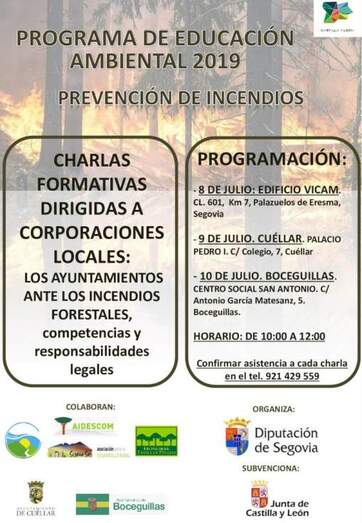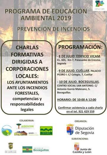 La Diputación de Segovia, a través del Área de Promoción Económica, va a organizar para los próximos 8, 9 y 10 de julio una serie charlas sobre prevención de incendios bajo el título "Los ayuntamientos ante los incendios forestales, competencias y responsabilidades legales".