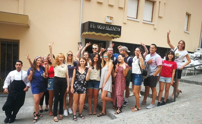 Los estudiantes vienen a Segovia a conseguir sus créditos universitarios en español. Llegaron el 22 de junio y se irán el 3 de agosto. Entre las actividades que realizan figuran clases, excursiones o degustaciones como la de este jueves en el espacio gastronómico en la Bajada de la Canaleja. “Es una experiencia única para ellos. Normalmente se van diciendo que es la mejor experiencia de su vida. Espero que este grupo también”, desea Marian.