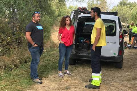 mediante un sistema de mangueras procedentes de un arroyo situado a más de 1.000 metros de distancia.