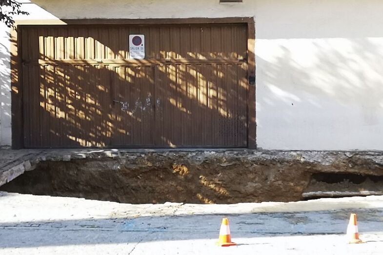 Socavón provocado por las lluvias torrenciales obliga a desalojar un edificio de San Millán