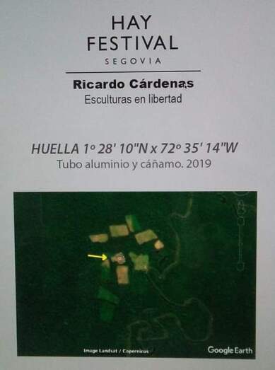 “Voy a poner mi obra al servicio de la deforestación”, prometió el escultor Ricardo Cárdenas en el Hay Festival de Cartagena de Indias. Dicho y hecho. En el mismo evento que acoge estos días Segovia, este colombiano, ingeniero y artista al tiempo, ha plantado en la Huerta de San Marcos sus bosques de aluminio y cáñamo que representan huellas reales de la deforestación en el Amazonas. Cicatrices calientes que se pueden rastrear a través de Google Earth. De hecho, el apellido de la obra son sus coordenadas exactas. En el interior de ese vacío nos concedió esta entrevista, donde fue tirando del hilo del mensaje trenzado en su escultura, exponente de la geometría abstracta.