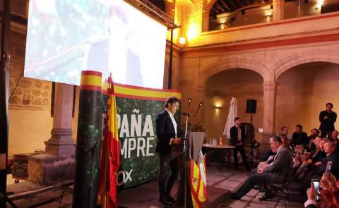 Finalmente, ha criticado que España tenga “17 parlamentillos”, ha defendido una administración descentralizada en los municipios, “la administración más cercana al ciudadano”; y un único poder judicial “no por méritos políticos, como en la Audiencia Nacional y el Tribunal Supremo”. También ha recordado que “nos sobra el Senado” y ha deseado que el candidato al Congreso, Rodrigo Jiménez, consiga 5.000 votos más en Segovia para lograr el escaño de diputado. “España va a ganar el 10 de noviembre”, ha concluido, antes de finalizar el acto entonando el himno nacional.