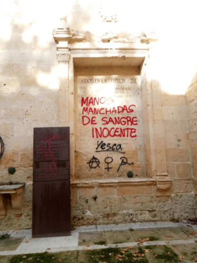 "Las pintadas, con firma de sus autores, han atentado tanto a los muros del antiguo ábside, donde figuran los nombres de los segovianos que lucharon en el bando nacional tallados en la propia piedra, como al monolito en recuerdo de quienes defendieron la II República colocado en 2013 con el fin de preservar la Ley de la Memoria Histórica", añade la nota.