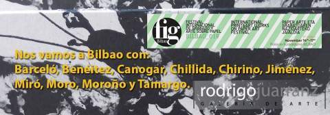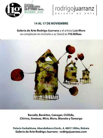 Luis Moro, uno de los artistas segovianos más internacionales, ha compartido stand con artistas de la talla de Miró, Chillida, Barceló o Chirino, entre otros, en el Festival Internacional de Grabado y Arte sobre Papel (FIG) que ha tenido lugar del 14 al 17 de noviembre en Bilbao. Lo ha hecho de la mano de la galería de arte arandina Rodrigo Juarranz.