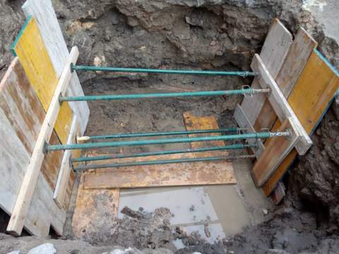 [Img #53647]“Debido a filtraciones ha habido que apuntalar los muros del foso del ascensor. De momento se va a parar la obra, hasta que el geólogo presente un informe y se hagan muestras de agua”, explican las fuentes, que añaden que “ahí debe de haber una balsa y está en caída”.