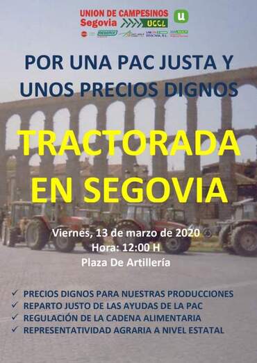 "Por estos motivos y algunos más que se quedan en el tintero hemos decidido convocar un acto de protesta consistente en una tractorada en Segovia el viernes 13 de marzo de 2020. Para que la relevancia de la protesta esté en consonancia con los problemas que sufrimos, y a fin de garantizar en todo momento la seguridad de los participantes y del resto de la ciudadanía, hemos mantenido una reunión con la Subdelegación el Gobierno y las fuerzas el orden, quienes se han manifestado dispuestos a colaborar para que todo discurra con la mayor normalidad posible, para lo cual nos mantendremos en contacto", han indicado.