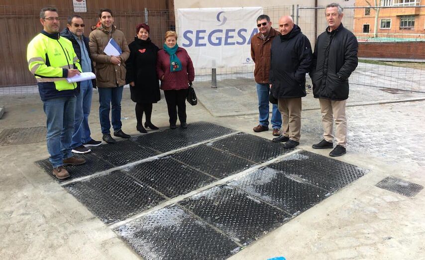 La alcaldesa, Clara Luquero, acompañada del concejal de Obras y Servicios, Miguel Merino, de técnicos municipales, la empresa encargada de los trabajos (SEGESA), de representantes de la asociación de vecinos de San Millán y del bloque de viviendas afectado por el hundimiento, han comprobado el resultado de esta infraestructura.