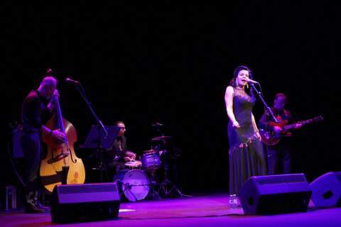 La artista, quien agradeció en castellano al público acompañarla en un día especial, ofreció un recital cargado de swing y de jazz en el que no faltó algún tema en español.