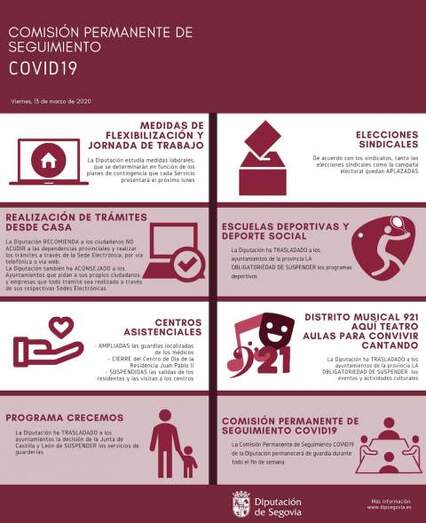 La Comisión Permanente de Seguimiento del COVID-19 de la Diputación de Segovia ha decidido este domingo eliminar la atención presencial a los ciudadanos en cualquier oficina de la institución provincial.