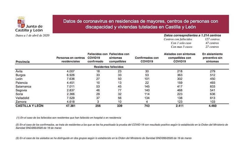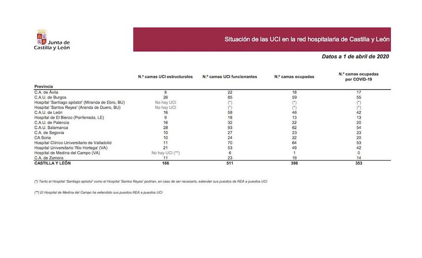 Situación epidemiológica del coronavirus (COVID-19) en Castilla y León (Actualización diaria. Datos a 01-04-2020)
