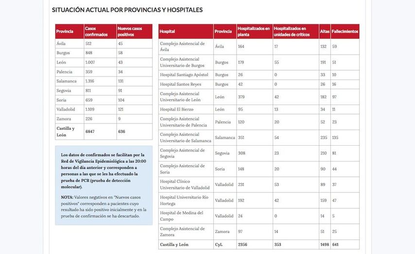 La Consejería de Sanidad ha confirmado a las autoridades sanitarias nacionales, desde la última comunicación pública, 636 casos más de infección por SARS-CoV-2, con lo que en Castilla y León se alcanzan los 6.847 positivos.