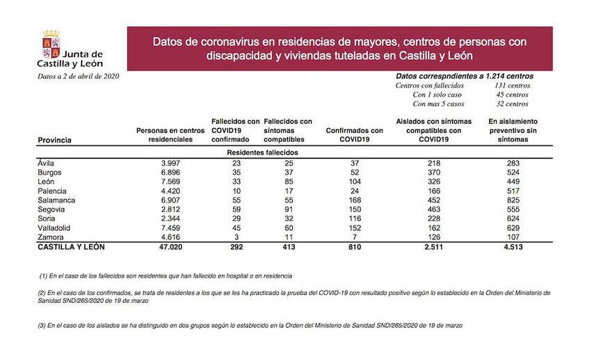 Situación epidemiológica del coronavirus (COVID-19) en Castilla y León (Actualización diaria. Datos a 02/04/2020)