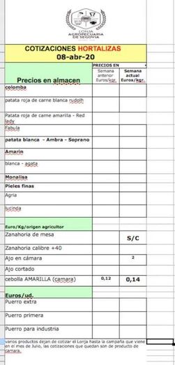 AgropecuariaLonja Agropecuaria de Segovia: Cotizaciones de 8 de abril de 2020