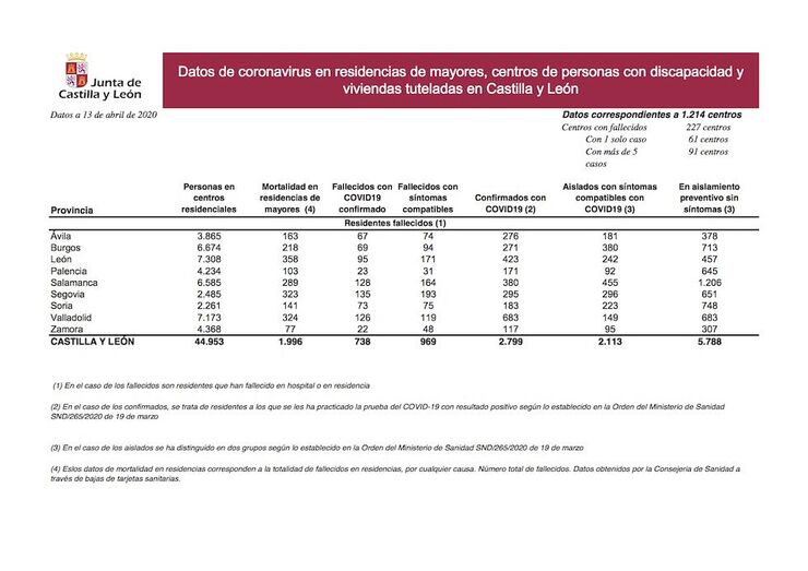 Situación epidemiológica del coronavirus (COVID-19) en Castilla y León (Actualización diaria. Datos a 13/04/2020)