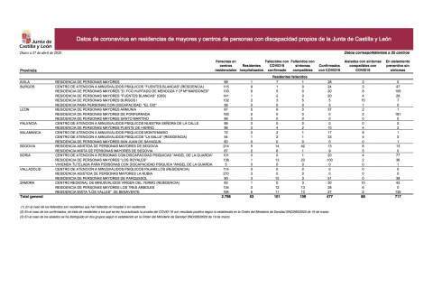 Situación epidemiológica del coronavirus (COVID-19) en Castilla y León (Actualización diaria. Datos a 27/04/2020)