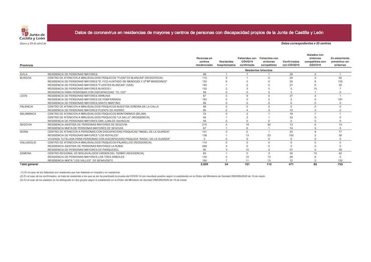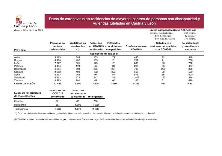 Situación epidemiológica del coronavirus (COVID-19) en Castilla y León (Actualización diaria. Datos a 28/04/2020)