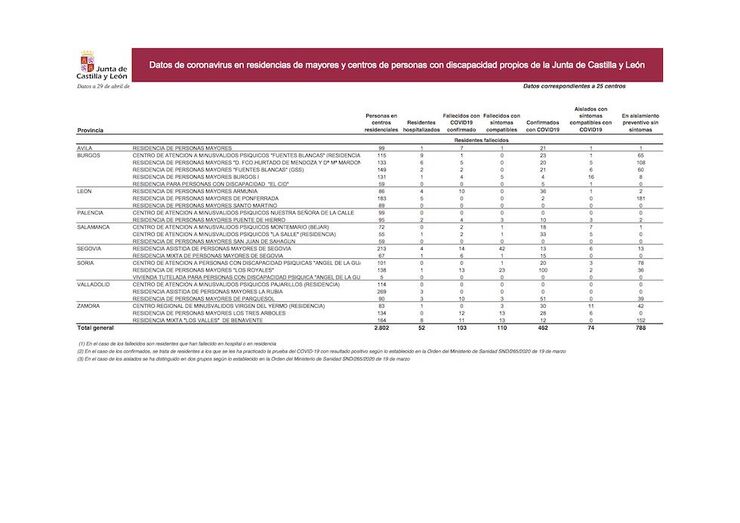 Situación epidemiológica del coronavirus (COVID-19) en Castilla y León (Actualización diaria. Datos a 29/04/2020)