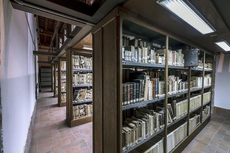 El conjunto de documentación del archivo, de unos 400 metros lineales, se puede agrupar en tres secciones: archivo, biblioteca y archivo musical.