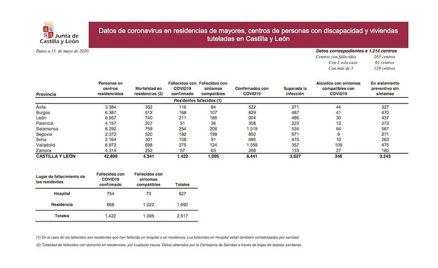 Situación epidemiológica del coronavirus (COVID-19) en Castilla y León (Actualización diaria. Datos a 15/05/2020)