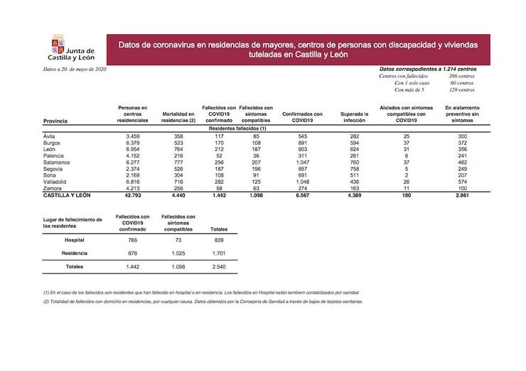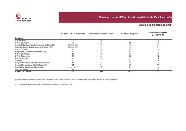 Situación epidemiológica del coronavirus (COVID-19) en Castilla y León (Actualización diaria. Datos a 20/05/2020)