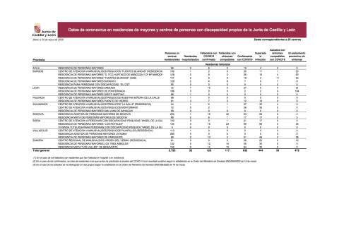 La Comunidad de Castilla y León registra hoy 53 nuevos casos de la enfermedad COVID-19, lo que sitúa el número actual de casos en 24.926. De ese número, 18.602 han sido confirmados por PCR y el resto (6.324) lo han sido por test de anticuerpos (Ac). La diferencia con el acumulado de ayer martes se justifica porque a partir de hoy sólo se contabilizan en la tabla los casos nuevos confirmados por PCR.