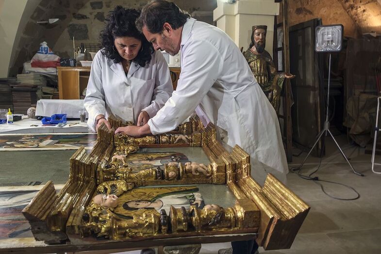 En esta línea de restauraciones, actualmente se está acometiendo una intervención en el lienzo “Adoración de los Reyes” por 4.230€, se ha empezado la restauración de la vidriera del rosetón norte (110.000€ para el total de vidrieras este 2020) y 31.440€ se emplearán para el mobiliario y sistema de iluminación de la Sala de Santa Catalina.