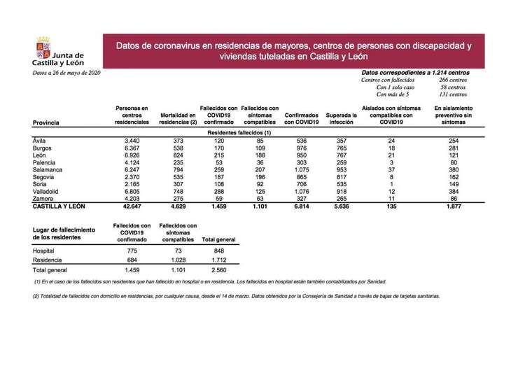 Situación epidemiológica del coronavirus (COVID-19) en Castilla y León (Actualización diaria. Datos a 26/05/2020)