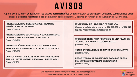 La Diputación Provincial de Segovia ha acordado, tras mantener una reunión este martes con los representantes del personal, la devolución y la compensación de horas de trabajo por parte de la plantilla de la institución durante el periodo de crisis sanitaria, según han informado fuentes de la institución a través de una nota de prensa.