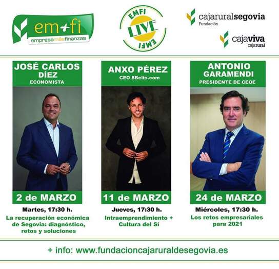 La undécima edición del Congreso de Empresas + Finanzas (EMFI) de la Fundación Caja Rural ofrecerá tres jornadas centradas en la recuperación económica del 2 al 24 de marzo.  “Si los anteriores congresos abordaron temas como la superación, la motivación, la innovación o la digitalización, este congreso se centrará en activar la recuperación económica post covid-19, una tarea prioritaria para todos”, ha apuntado la directora de la Fundación Caja Rural, Beatriz Serrano.
