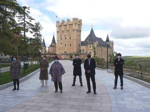 La estela grabada es conocida por los expertos desde el siglo XVI y procede de la muralla, en concreto del lienzo situado frente al convento de Santa Cruz en Segovia capital. Se trata de una estela, realizada en piedra caliza clara, de remate rectangular con un arco de medio punto rebajado. En el espacio que forma el arco se representa a un jinete montado a caballo cabalgando hacia la derecha y sujetando con la mano izquierda las riendas y con la derecha una lanza, representación típica de jinete en otros lugares de Hispania en general y de la Celtiberia en particular.