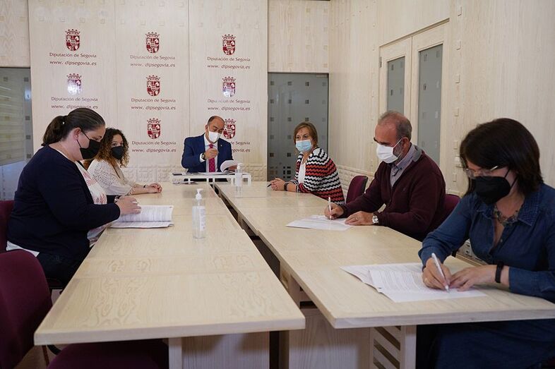 La Diputación continuará contribuyendo un año más a la actividad organizada desde los cuatro Grupos de Acción Local de la Provincia, por medio de una subvención conjunta de 90.000 euros, cuyos convenios han sido firmados recientemente por el presidente de la institución provincial, Miguel Ángel de Vicente, y por Carlos Fraile, presidente de la Asociación para la Promoción y Desarrollo Honorse-Tierra de Pinares, Pilar Ares, presidenta de AIDESCOM-Santa María la Real de Nieva, Jesús López, presidente de CODINSE y María Cuesta, presidenta de la Asociación del Desarrollo Rural de Segovia-Sur, María Cuesta.