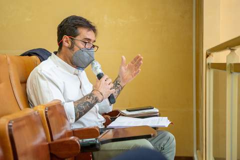El proceso se inició hace varios días con el montaje de todo el andamiaje para permitir realizar los trabajos por parte de los profesionales con las medidas de seguridad oportunas. Una vez instalado, se ha procedido al desmontaje del conjunto de la vidriera para ser trasladada hasta el taller, lugar donde se efectúa el grueso de la restauración.