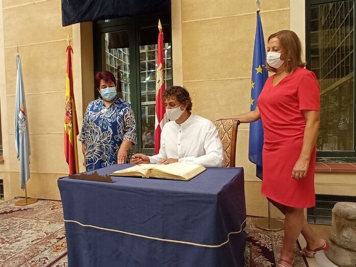 El piragüista ha firmado en el libro de honor y recibido, como recuerdo, el perfil de Segovia.