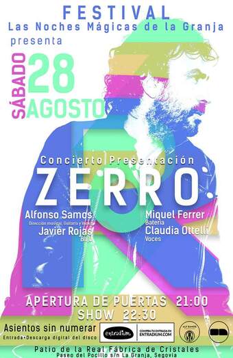 Zerro (Jaime Cerrolaza), artista madrileño residente en ibiza y muy vinculado a la Granja , presenta su primer album en solitario despues de mas de 15 años como cantante del grupo de versiones Los Bumeranes. Sera en el Museo del Vidrio dentro del Festival Las noches Magicas de la Granja Contara para esta presentacion con la banda original con la que se grabo el disco, musicos profesionales de la primera division española: Alfonso Samos , productor y guitarrista del disco , con una trayectoria vinculada a artistas de la talla de Luz Casal, Chenoa,Ella baila sola, etc. Al bajo Javier Rojas, tambien conocido como el Tio Calambres y en la bateria Miquel Ferrer. En la puesta en escena no faltaran los coros interpretados por Claudia Otelli , cantante italiana residente en Ibiza , ni varias sorpresas que haran emocionar y vibrar al publico. Este album de rocanrol con guiños a otros registros y generos , nace de la propuesta de Alfonso Samos como productor, de una pandemia , dos guitarras , un cuaderno y un telefono dando como resultado diez historias, diez canciones compuestas por Zerro que nos hablan de emociones , aventuras y un poco de canalleo. El disco solo ha sido presentado en ibiza con una excelente acogida de prensa y publico , llenando dos dias el aforo y derrochando energia, desparpajo y rock and roll durante las dos horas que dura el show. Se espera repetir emocion en la Granja , lugar muy especial para el cantante que en el propio disco agradece asi : "Al pueblo mas bonito, a la Granja , por ser el escenario mas importante de nuestras vidas.Te quiero mas que a mi vida, mas que a la Virgen del Carmen, y de rodillas te juro que este himno lo cantare en el pueblo mas pronto que tarde. ¡Viva San Luis! ¡Majetes!