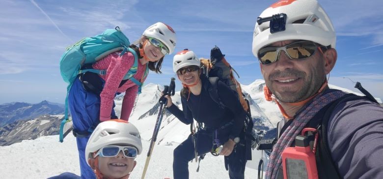 La actividad deportiva de los pequeños ha ido poco a poco evolucionando al visitar otros sistemas montañosos de la geografía española, en 2020 realizaron sus primeras cumbres de más de tres mil metros, en Pirineos con 6 y 8 años siendo éste un reconocido esfuerzo para niños de su edad… Ahora, este año 2021 pusieron sus ojos en los Alpes, una cordillera de grandes dimensiones y exigencia, donde valoraron poder realizar alguna actividad acorde a sus capacidades, dado que estas montañas ya son por muchos motivos otro nivel técnico y físico.